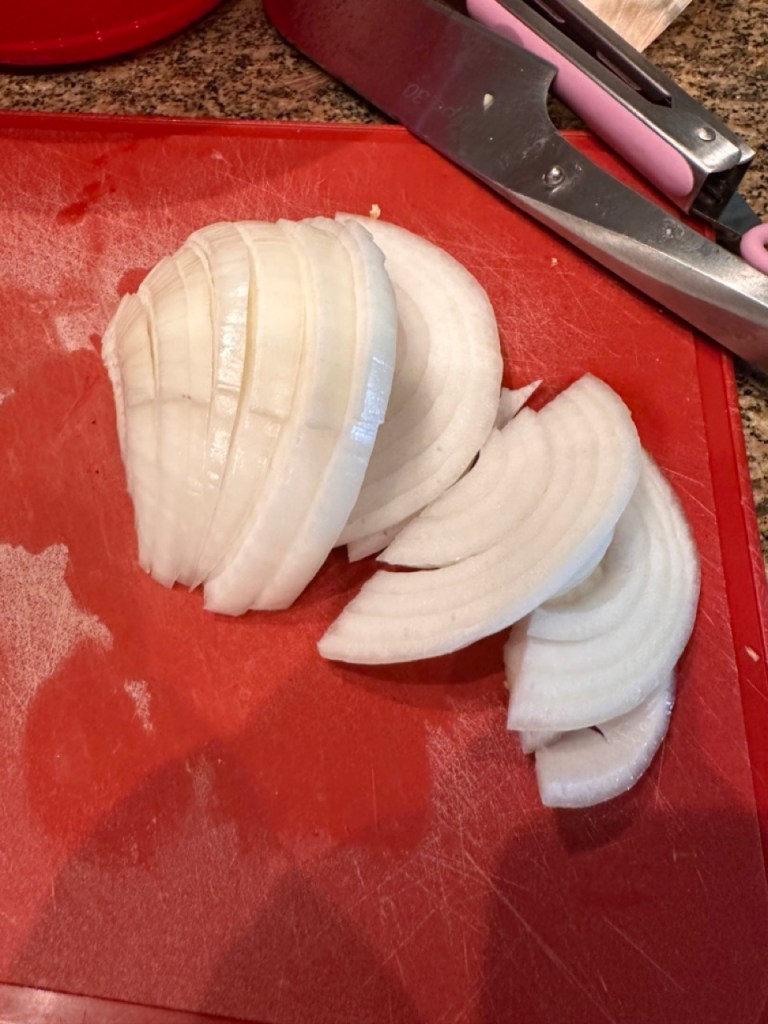 - 1/2 of a very large onion or 1 whole medium sized onion